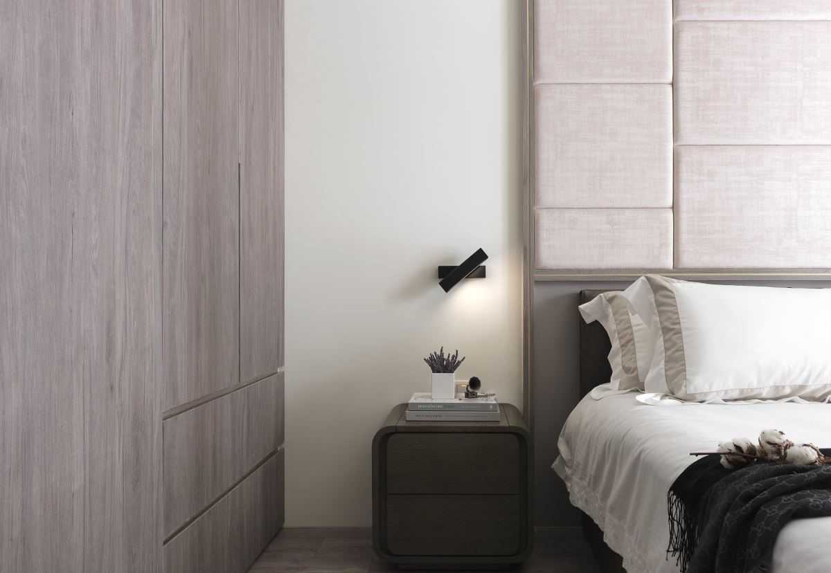 走進(jìn)私領(lǐng)域,有別于公共空間的沉穩(wěn),換上輕盈的淺色系,予以私人空間更減壓的放松氣息。