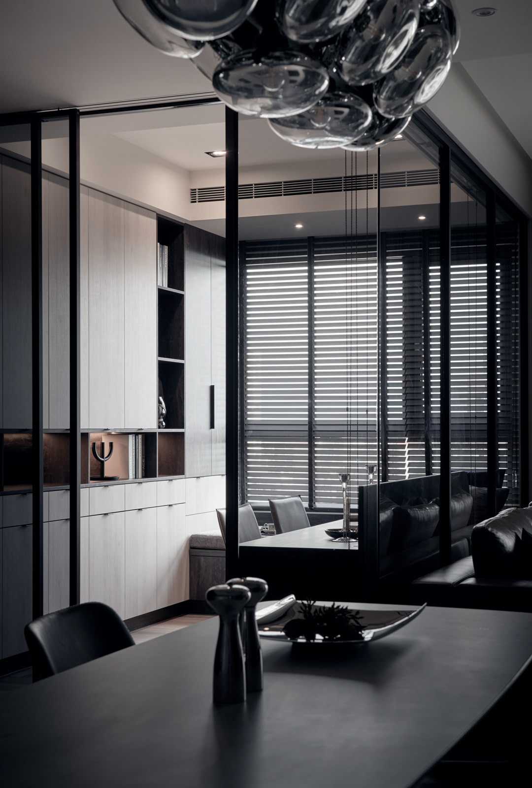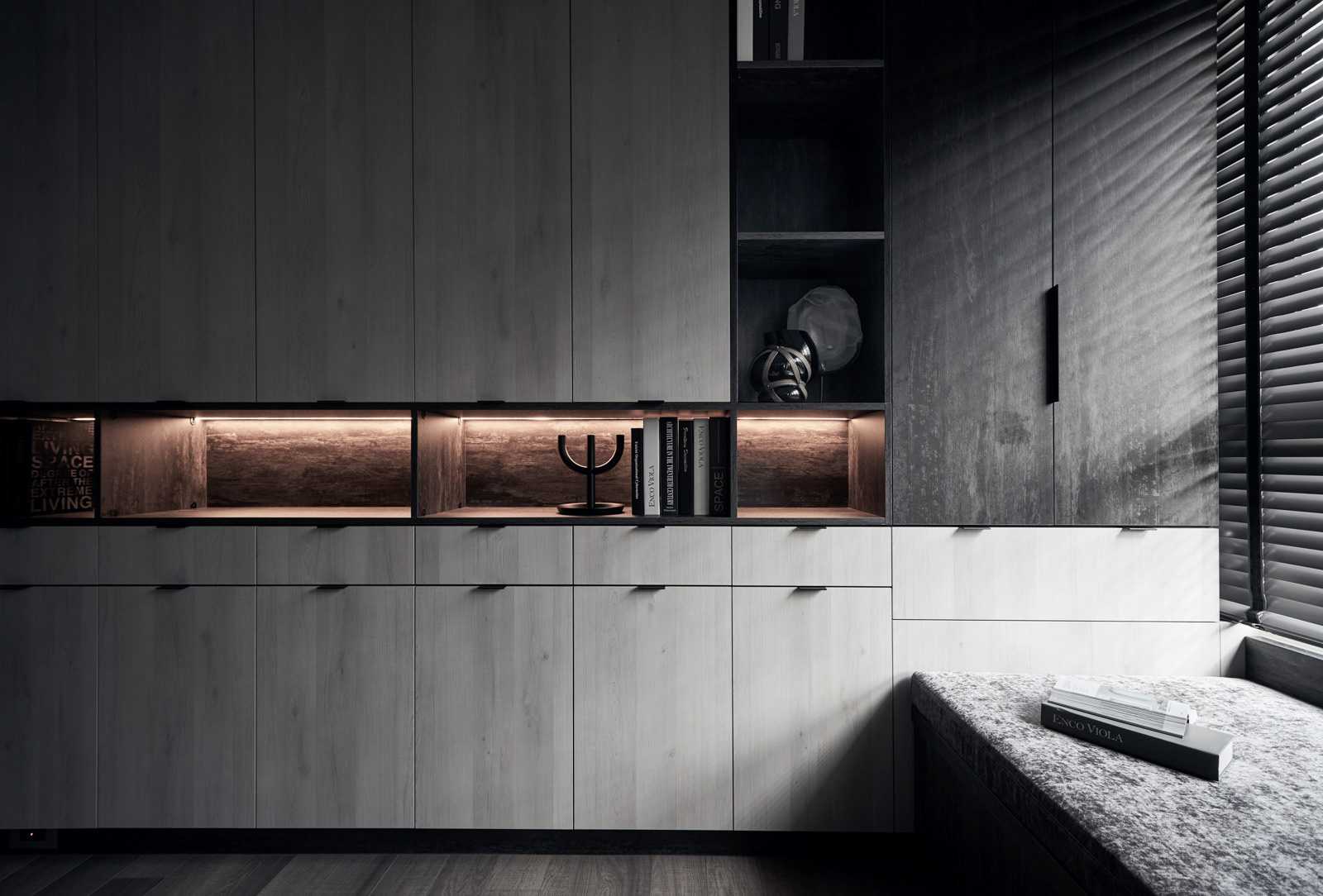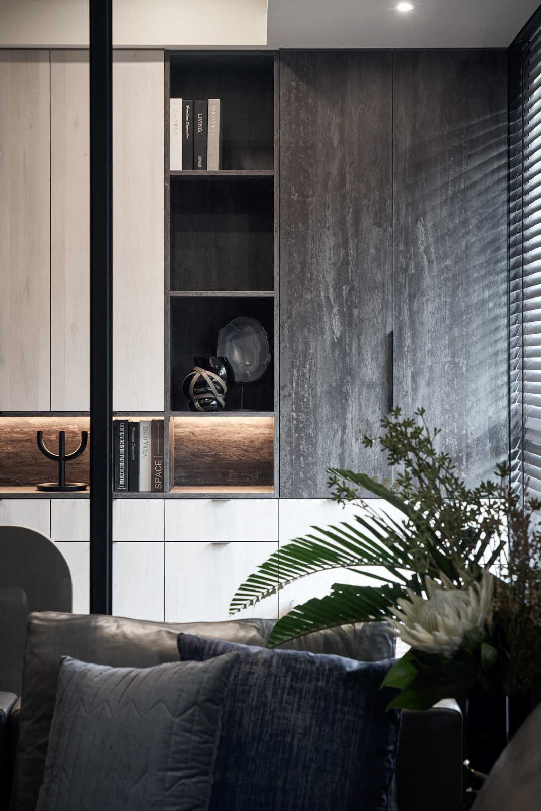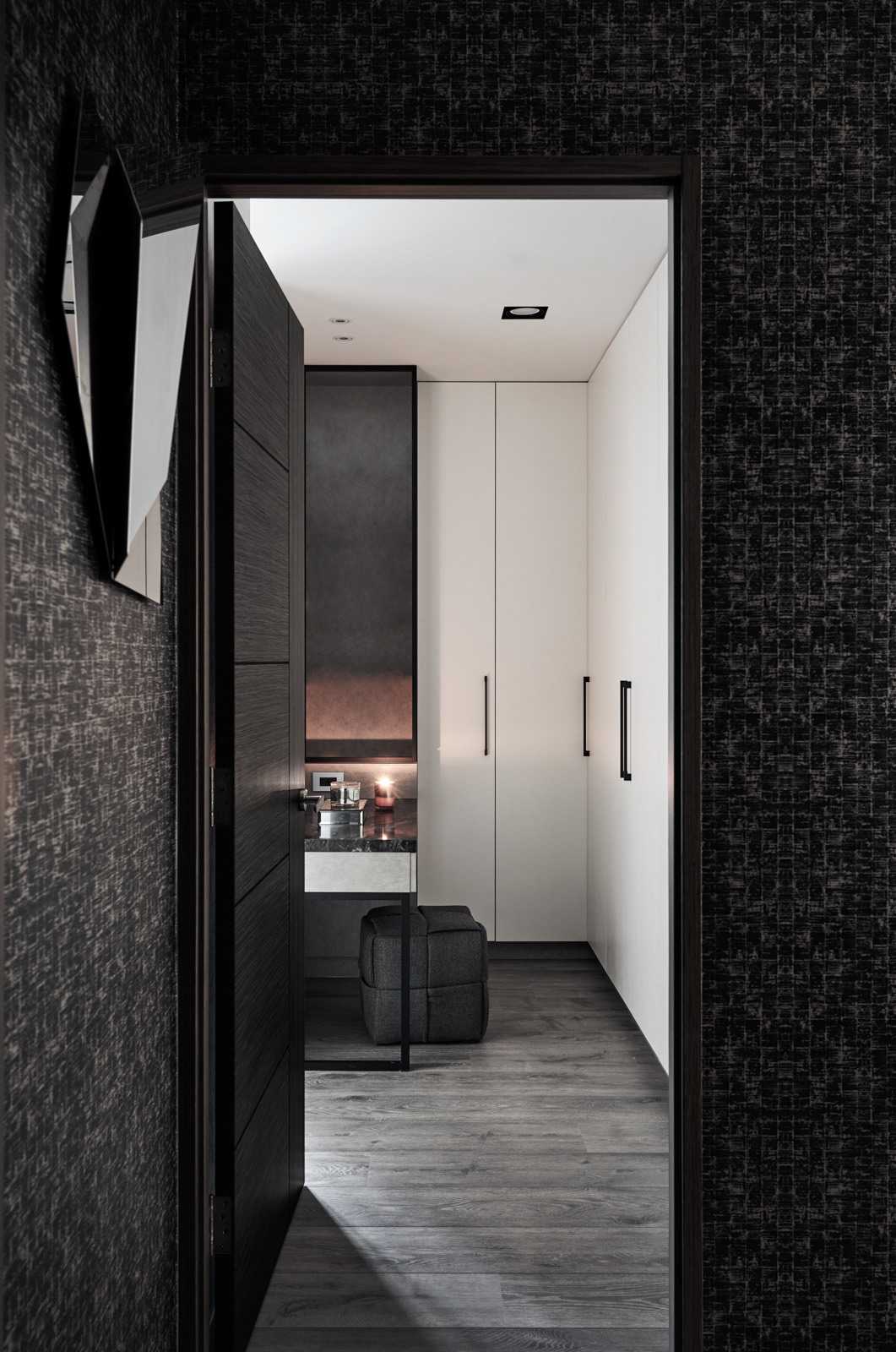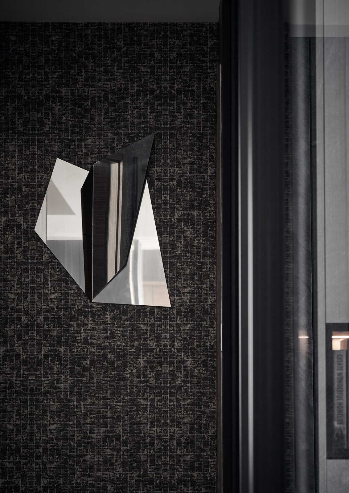 時間精釀了長年以來的付出,昔日懷抱著的夢想一步一步被實踐,擁有了自己的品牌、能在招牌底下埋入獨有的見解,與屋主并肩隨行,激蕩出對這個家共有的完美想像。終于有一天,設(shè)計師倚靠對美好事物的洞悉,激發(fā)靈魂里屬于藝術(shù)家的部分,創(chuàng)作出玄關(guān)處傾斜45度角一面全身鏡、房門外切割重組的梳妝鏡、鑲在灰墻上幾何掛飾? ?不規(guī)則的玻璃造型有如散落的星兀自在空間里閃亮,為沈靜色系點上光芒,為畫面拼上最后一片迷人色塊。