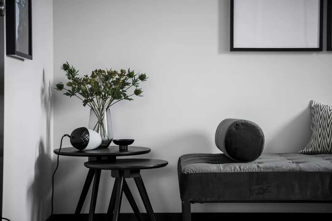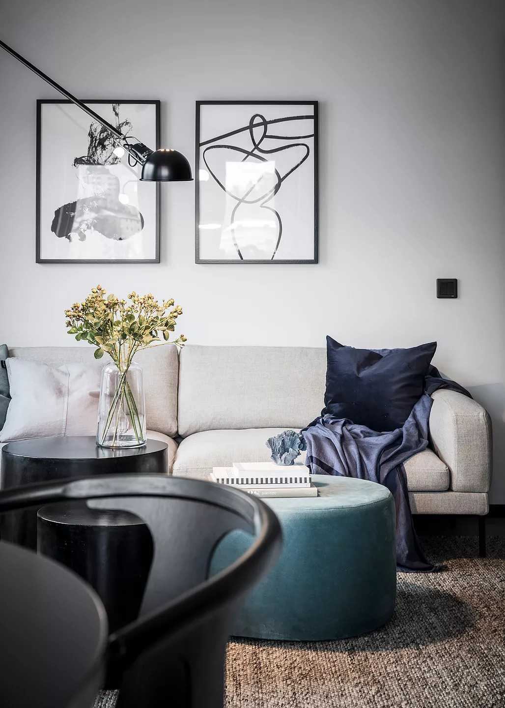 “態(tài)度的原始工業(yè)感覺”是設(shè)計的方向。顏色沿著公寓的堅固裝飾,柔和的灰度作為藍色元素的基礎(chǔ)。為了不讓室內(nèi)感到寒冷和寒冷,采用了各種天然材料,其中包括:黑色木材和黑色混凝土,柔軟元素,如天鵝絨和家具和照明中的圓形有機形。![]()
