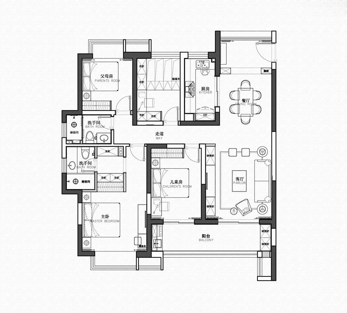 本案是幸福的四口之家的現(xiàn)代美式新房。熱情的女主人與穩(wěn)重的男主人性格迥異,相同的卻是他們?yōu)閷?duì)方考慮的心和對(duì)我們的信任。